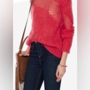 Hot pink. High neck. Never worn. Cool distressed design. High end fabrics mostly made of mohair so soft and luxe feels. 25 inches long