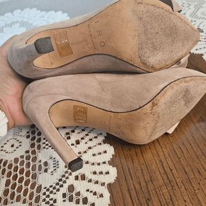 Excellent pre-loved condition IRO pump heels for women size 37. Kind like nude tan color. Suede top materials. Please see photos.