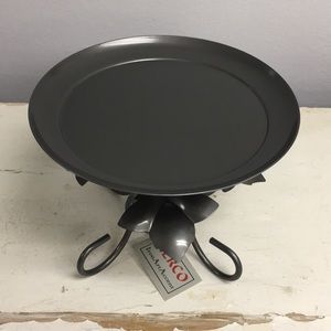 Well made, sturdy candle holder base for large round candles. I have several of these pieces. All matching. They are like a dark dark steel grey color. NWT **Candle in photo not included**
