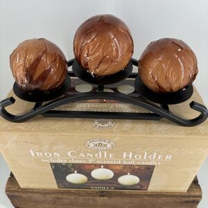 Iron Candle Holder Renwick Candles w/3 Vanilla Scented Ball Candles 11”Wx4.24”L