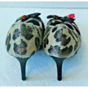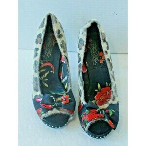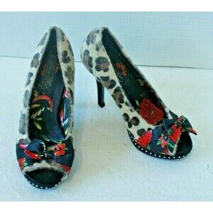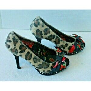 Iron Fist Heels Leopard Hair Flower Pinup Peep Toe Shoes Womens Size 7