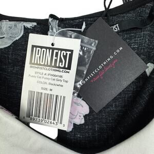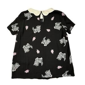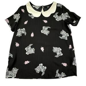 Iron Fist Vintage Inspired Cat Heart Print Peter Pan Collar Blouse Women's SZ M
