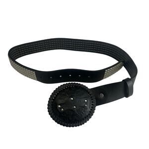Iron Horse Black Studded Embossed Leather Belt Buckle Size S/M never worn, no tags