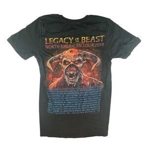Official Iron Maiden "Legacy of the Beast" North American tour shirt from 2019. Features bold print on the front, tour dates on the back. Black tee in a men's small fit. Perfect for fans of classic British heavy metal and one of the most iconic metal bands in history.