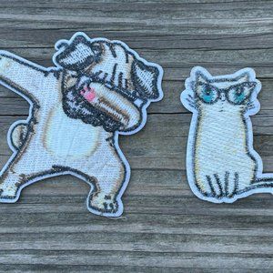 Iron On Patches Lot of 2 One Dog One Cat Embroidery Applique Patches Craft Clothes