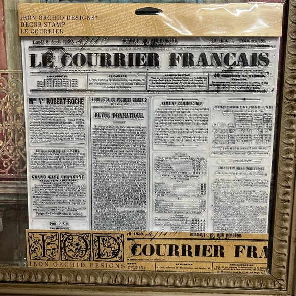 Elevate your home projects with the Le Courrier Decor Stamp from Iron Orchid Designs. This stamp brings a classic touch to your creative endeavors…. approximately 11 1/2” x 12” ….and included is a storage envelope with a snap closure to keep the stamp in between projects … this is the best price out there for both items.