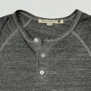 Iron & Resin Shirt Mens Small Heather Gray Henley Raglan 3/4 Sleeve Made USA