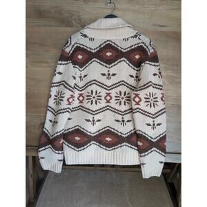 Iron & Resin Wincha Shawl Sweater Womens M Tan Red Print Button Front 103628 NWT