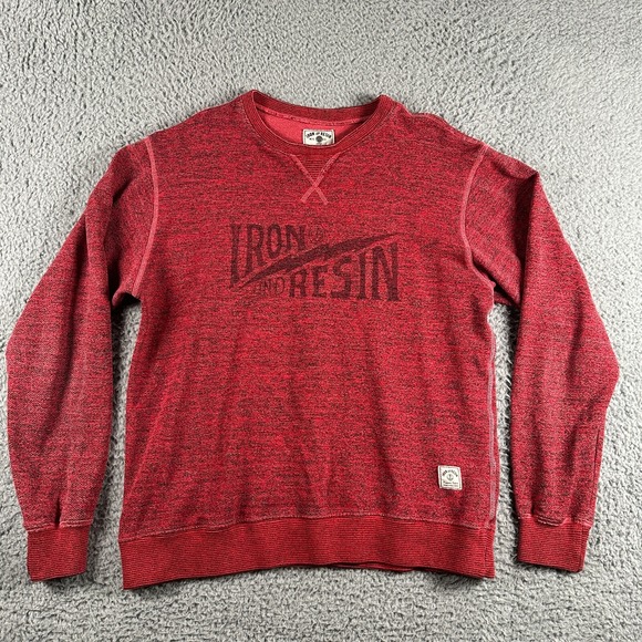 Iron and Resin Logo Sweatshirt Mens Large Red Pullover Crew Neck Made in USA