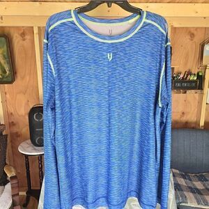 (Like New) Gently worn, Men's Iron Joc. Xl, Long sleeve Dry wick material, blue / white.Neon green stitching. Please look at the pictures for detail. Thank-you.😀