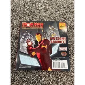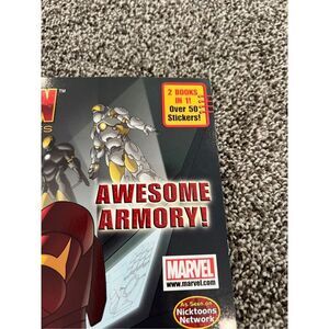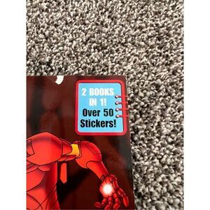 This is a children's 2 in 1 book featuring Iron Man from the animated series 'Iron Man: Armored Adventures.' It includes over 50 stickers and is designed for young fans of the Marvel superhero.