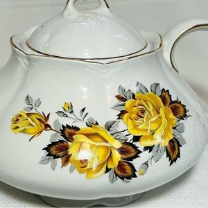 Ironstone Teapot VTG Ellegreave 598A Yellow Roses Scalloped Gold Trim EUC