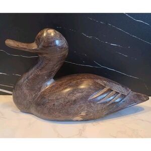 Vintage Ironwood Duck Figurine Carved Handcrafted 9.5" x 3.¼" x 5.¼" Dark Grain Wood | Excellent Used Vintage Condition |*Flaw, some cracks in the wood grain from age. Discoloration Anomalies in the wood color | Please refer to the photos for the condition | Weight before packaging 1.14 lbs.