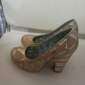 Irregular Choice Chunky Platform Heels beige suede and gold LaméSize 37Preown