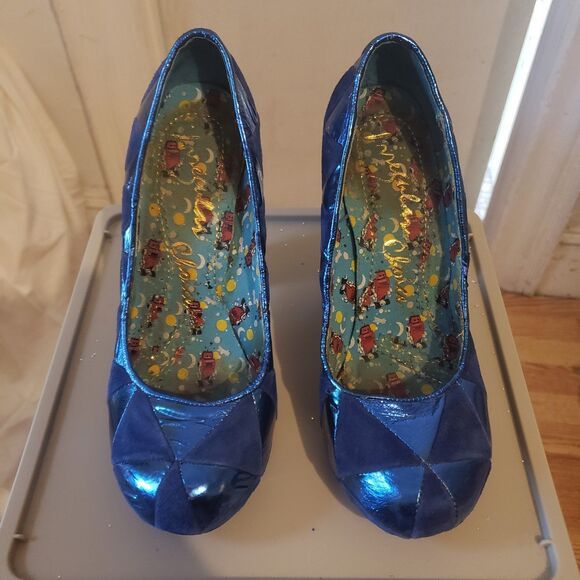 Irregular Choice Chunky Platform Heels cobalt blue suede and cobalt blue Lamé