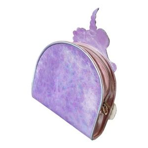 Introducing Lady Daisy, the pastel perfect purse from Irregular Choice! Featuring a cute applique iridescent pink unicorn with an iridescent purple mane that shimmers in the light. This enchanting purse also has soft and shimmery applique clouds with a huge glitter and iridescent pastel rainbow in a glitter blue sky. Absolutely magical, this purse is ideal for unicorn lovers and pastel princesses of all ages!