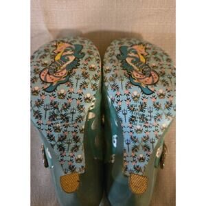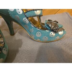 Irregular Choice Heart Skull Heels Sz 7.5 Teal Silver Suede Snap Buttom
