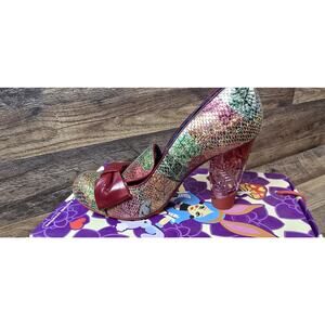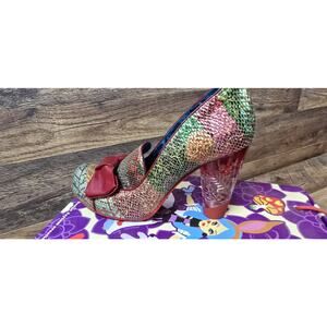 Irregular Choice Ozzy Green/Red Chunky Heel 3801-02K USA 10 EUR 41 Pre Owned w the Box. Great condition. Some minimal wear to the bottom sole. Everything else is clean and w very minimal wear. Please review the pictures for condition.