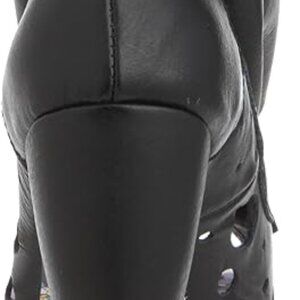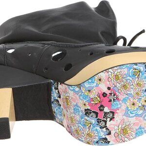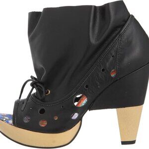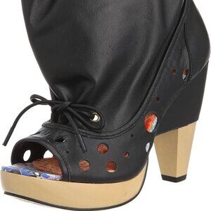 Irregular Choice Soho Sunshine Leather Booties Wood Heel Peep Toe Black New