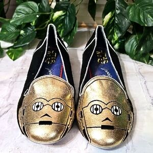 Irregular Choice Star Wars C- 3PO Black and Gold Loafers 10 NWOB