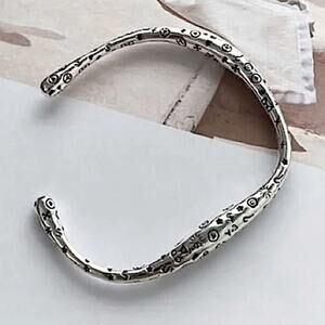 Irregular Graffiti Sterling Silver Bangle Cuff Bracelet