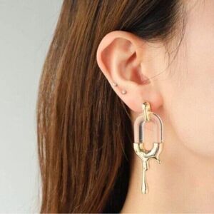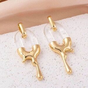 Unique Design: These statement earrings feature a fluid metal design with a resin inlay, creating a striking and modern look.