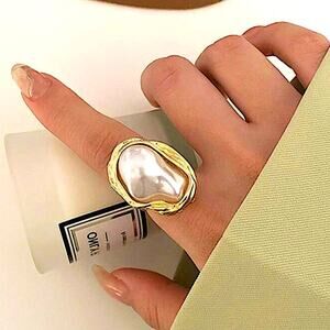 Irregular Pearl Rings Gold Baroque Statement Ring Adjustable Chunky Wedding