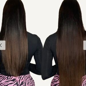 Brand new hair extensions. 100% natural hair of 20" (220 grams) of hair extensions. There are 10 invisible clip ins. They are Heat resistant up to 250F/120C. Cut, dye and heat style however you’d like. We do not recommend bleaching your hair extensions as it can compromise the integrity of the hair. ADDS great amount of volume. Good for daily wear or even big events