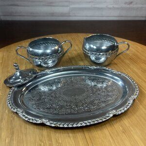 Irvinware Coffee Tea Sugar & Creamer Serving Tray Set Chrome 9.5" Tray USA