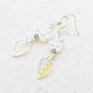 Is it Winter Yet??? Iridescent Glowing Shimmering Flower + Leaf Dangle Earrings