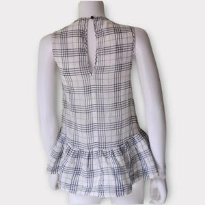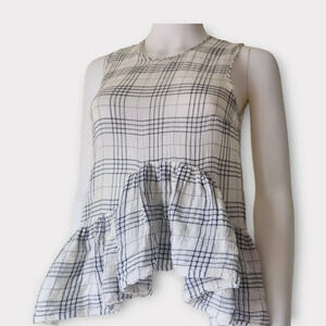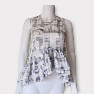 Isa Arfen Sleeveless Ruffle Blouse Size 8 Plaid Check