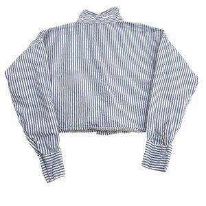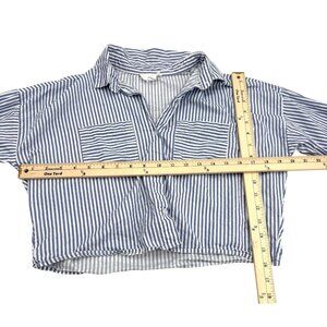 Isa & Ella Women's Striped Cropped Button-Up Shirt Size Small Blue & White