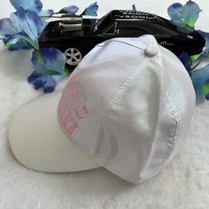 NWOT. Baseball Cap for Women OS. Iridescent white with embroidered graphic design front, adjustable fastener. Please note the brand tag is missing, so I have attached the name of the company based on the rn#. Pictures are part of description.
