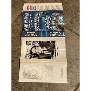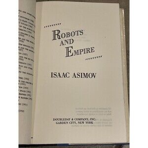 Isaac Asimov : Robots and Empire (1985 Doubleday First Edition HCDJ). Book Club edition. Spine not broken so it does not appear to have been read. Dust jacket in good shape but does show signs of wear. Hard cover in great shape. Pages clean but edges show some slight discoloration. Great first edition for a beginner collector or sci-fi fan but it is a pre-owned copy with some minor signs of age.