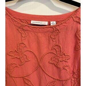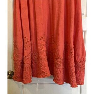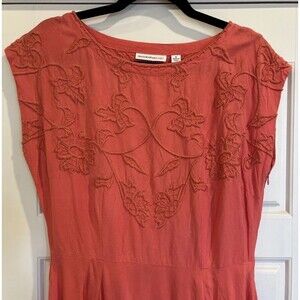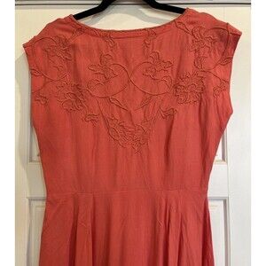 Isaac Micah LIVE! Midi A-line Dress, Size 8, Linen, Embroidery, Peach/Salmon