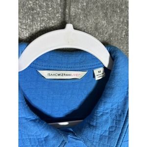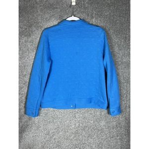 Isaac Misrahi Live Quilted Button Up Jacket Womens Medium Blue Knit Pockets