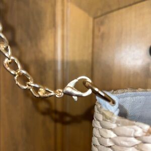 ✨Isaac Mizhari On Trend Pearl-Handled Woven Basket Bag w/ Gold Crossbody Chain ✨