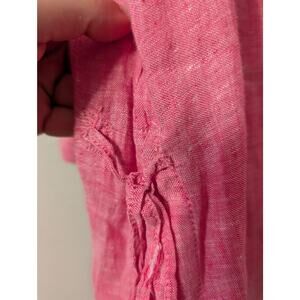 Isaac Mizrahi 100% Linen Long Sleeve Tunic Top Womens L Pink Barbiecore Collared