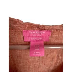 Isaac Mizrahi 100% linen Orange/Red Short Sleeve V Neck Size M