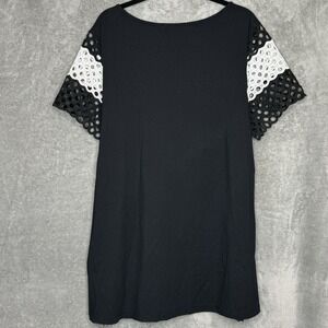 Isaac Mizrahi 2X Shirt Top Black White Striped Short Sleeve Scoop Neck Stretch