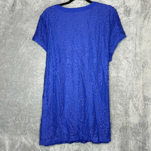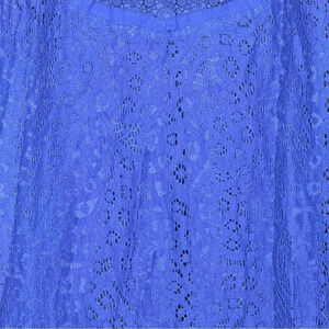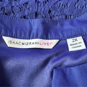 Isaac Mizrahi 2X Shirt Top Teal Blue Solid Cap Short Sleeve Scoop Neck Lace Over