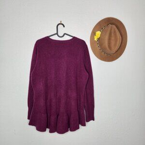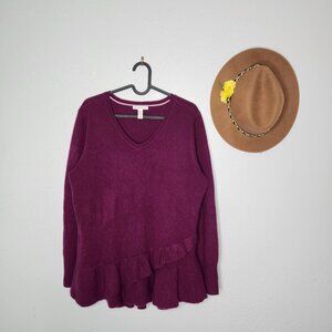 Isaac Mizrahi 2-ply Cashmere Ruffle Sweater Plum Purple Size L