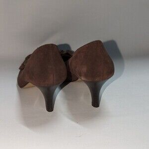 Isaac Mizrahi 6.5 Brown Leather Kitten Heels with floral applique