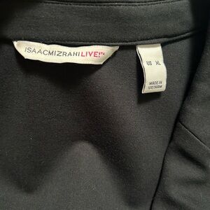 Sleek black blazer with a tailored fit. Features classic lapels and front pockets. Ideal for professional and casual settings. This blazer is superduper comfortable. It has a stretch material. A classic look, but with without the stiffness of a blazer.