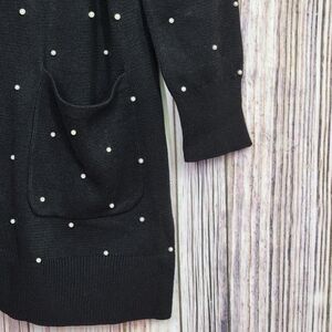 Isaac Mizrahi Black Faux Pearl Long Open Front Cardigan