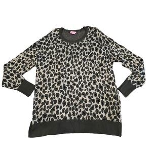 Isaac Mizrahi Black Gray Leopard Print Long Sleeve Crew Neck Sweater, Size XXL