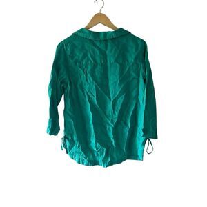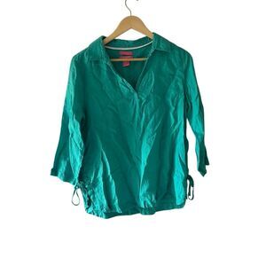 Isaac Mizrahi Blue Linen Tunic 3/4 length sleeves aqua lightweight beach