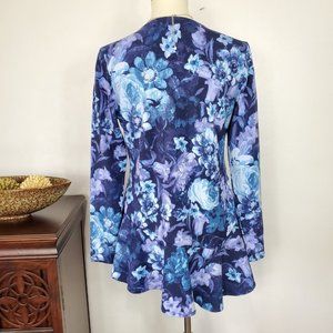 Isaac Mizrahi Blue Purple Floral Top Asymmetrical Hem NWOT