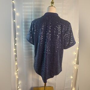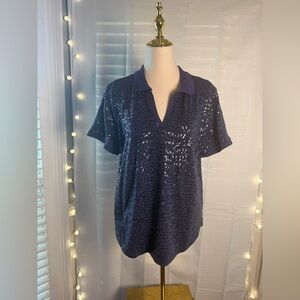 Isaac Mizrahi Blue Sequin Polo Blouse