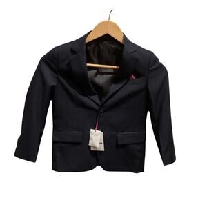 Isaac Mizrahi Boy’s Blazer Jacket Color Navy Blue Red Pocket Square NEW Size 5